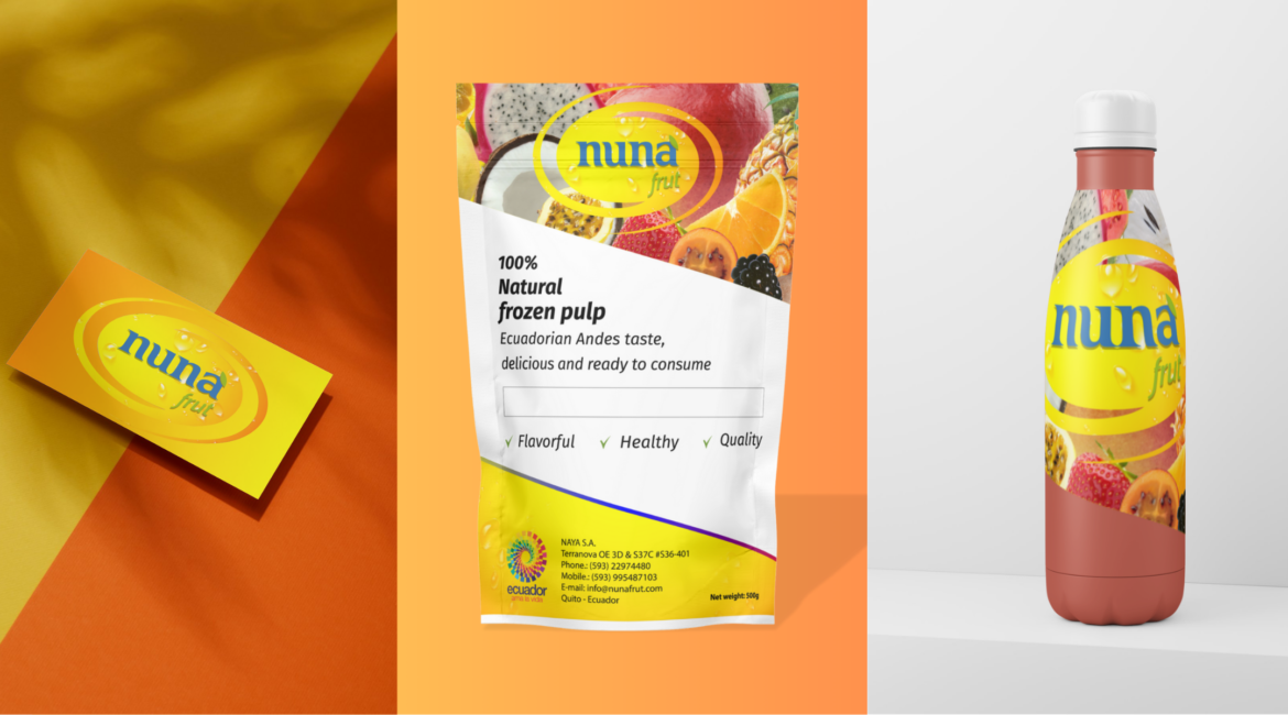 Nuna Frut Packaging Design Packaging and business card design for Nuna Frut, an established Ecuadorian producer of natural fruit pulp.